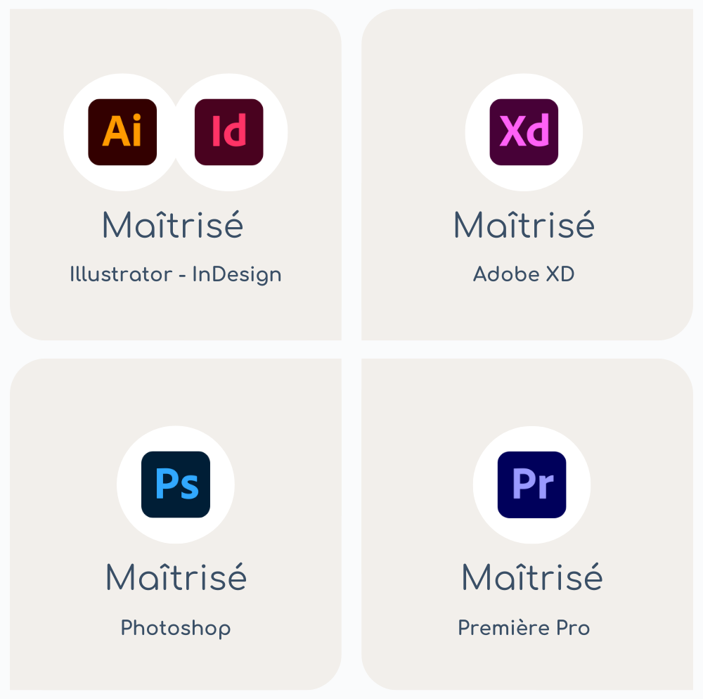 Ces compétences me permettent de répondre à des besoins en design graphique, en conception UX/UI et en montage vidéo.